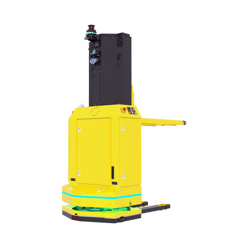 Robot projetado para movimentar cargas paletizadas, com capacidade de até 1200 kg, adaptável exclusivamente a paletes europeias, ideal para processos de armazenamento e Intra logística.